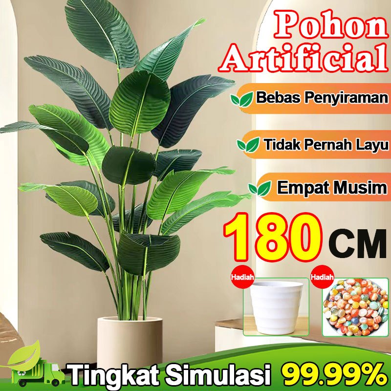 Palem Plastik Pohon Tanaman Hias 180cm 6Akelas Daun Pisang Jumbo Artificial Import Dan Daun Daun Pisang Hias Dekorasi Sudut Rumah