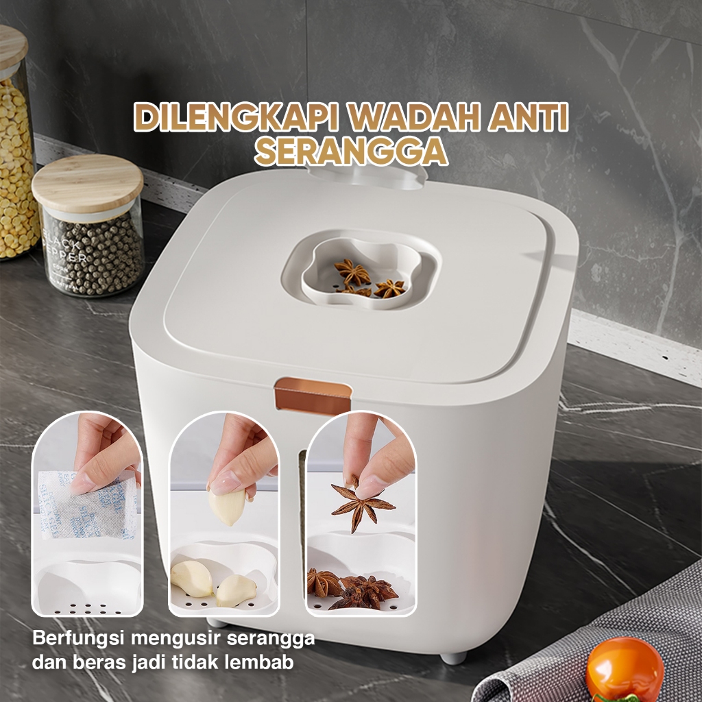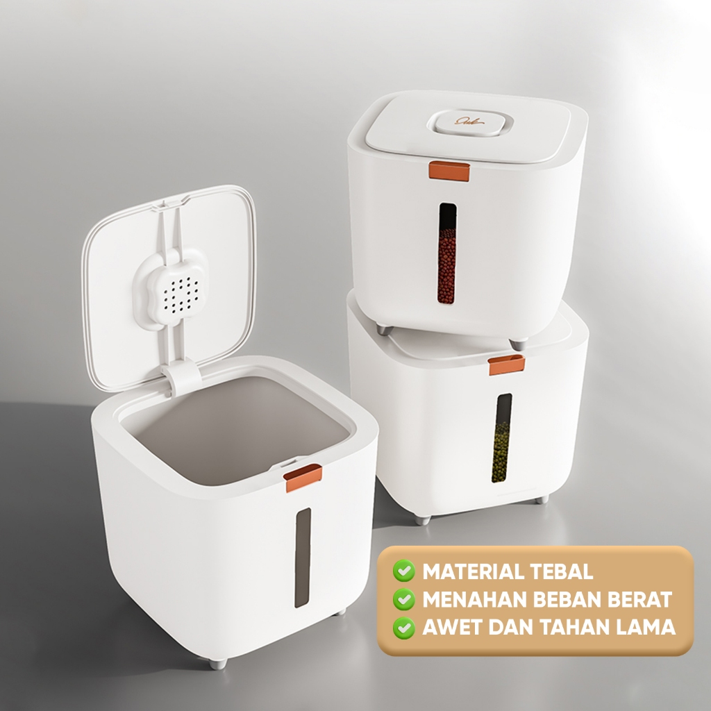 LIVING MALL Dispenser Beras 5KG 10KG / Tempat Beras Serbaguna / 1 Set Tempat Beras / Rice Bucket E03-E04