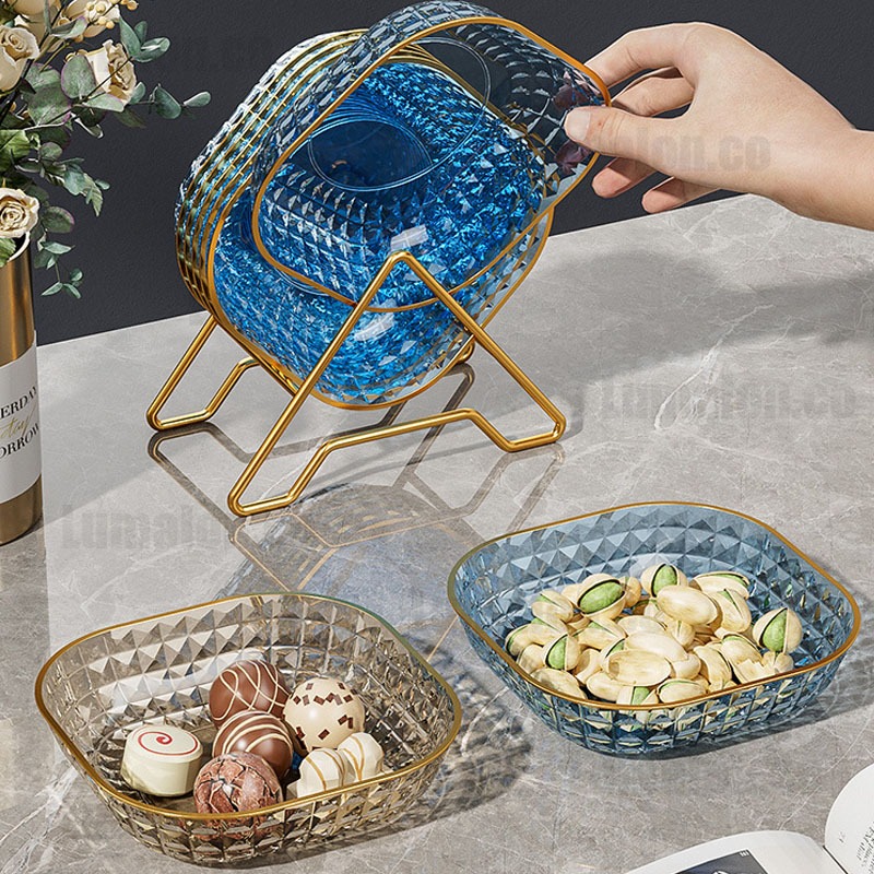 6 Piring + 1 Holder Piring Buah Snack Dish Plate Plastik Rumah Tangga Makanan Ringan Piring Perlengkapan Dapur