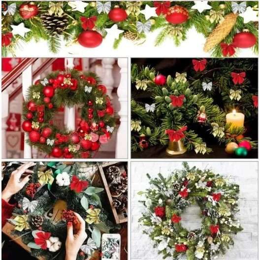 Set 12 P0T0NG Pita Hias Natal Berwarna Merah dan kuningan mengkilap Hiasan Pohon Natal Aksesori Pembungkus Hadiah dan Dekorasi Pesta Ulang Tahun