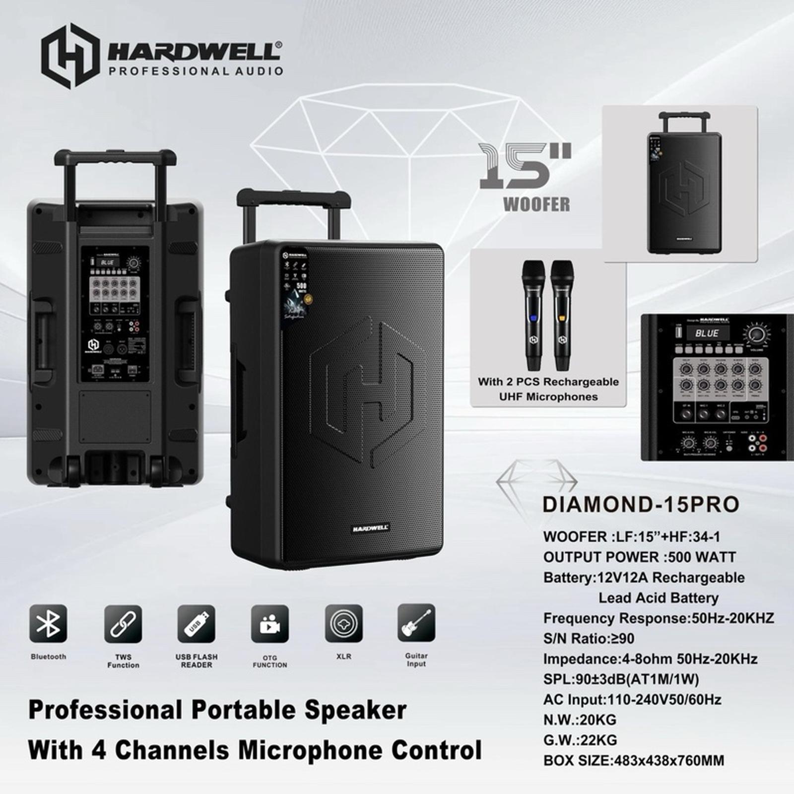 Speaker Portable 15 inch Hardwell Diamond 15 Pro Original USB Bluetooth