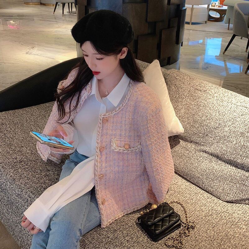 First Girl-Blazer Wanita Tweed Premium Korean Style Blazer Korea Pink - G017