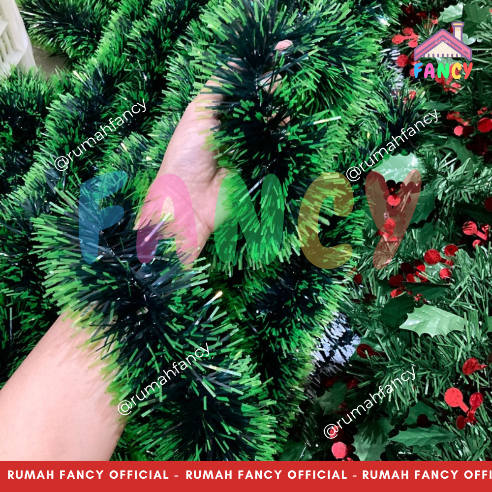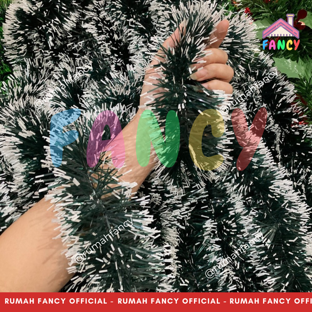 [GROSIR] 1 LUSIN / 12 PCS Slinger CEMARA HIJAU TUA SALJU 9CM Tinsel Rumbai NATAL