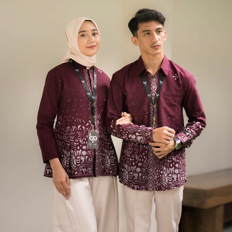 Couple Batik Atasan Pria Wanita Blouse Kemeja Premium Lapis Trikot