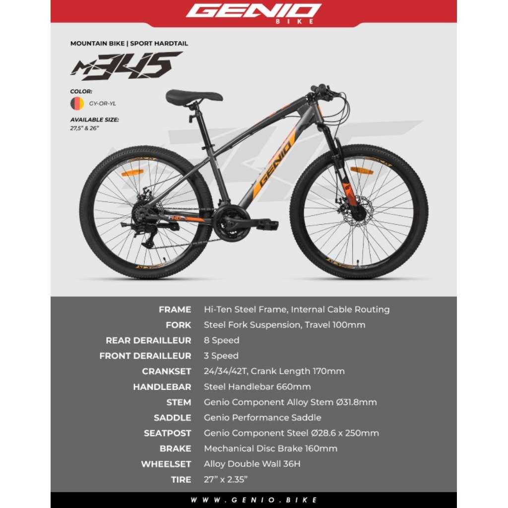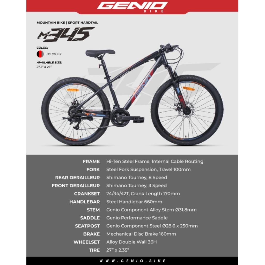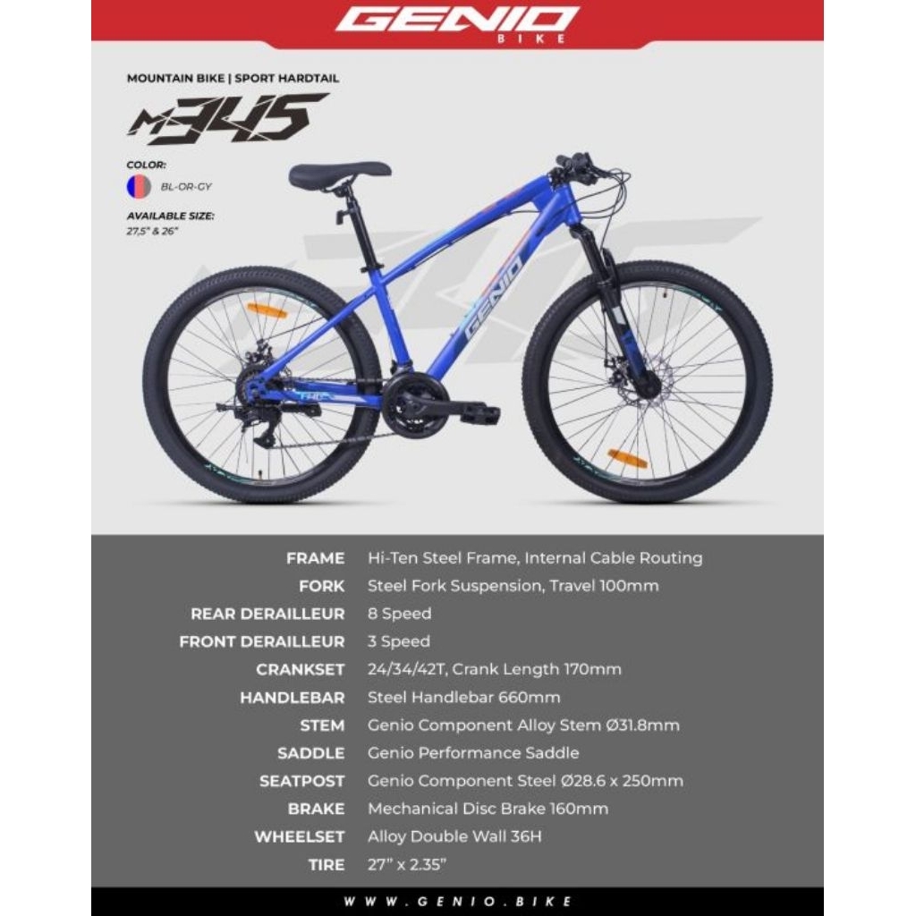 Terbaru Sepeda MTB Genio M345 27.5" 3x8 Speed