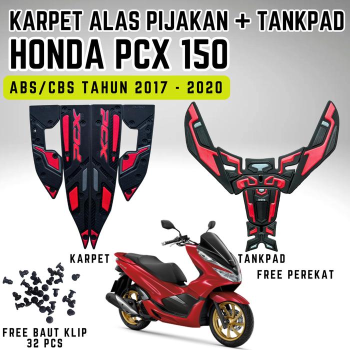 PAKET AKSESORIS MOTOR HONDA PCX 150 ABS CBS KARPET & TANKPAD BAHAN KARET PREMIUM ANTI LICIN - MERAH, FULL SET PCX 150
