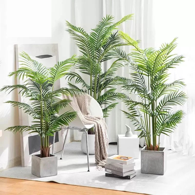 Pengiriman Cepat Tanaman hias Artificial palem kuning DAUN PALEM PLASTIK 95/85CM DAN POT DAUN PALEM PALEM JUMBO DAUN ARTIFICIAL