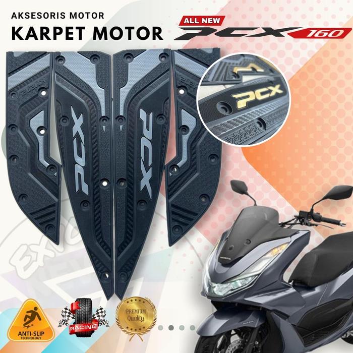 KM272 KARPET MOTOR HONDA PCX 160 OLD 2021-2024 FULL KARET ANTI LICIN PREMIUM HITAM DOFF MOTIF GLOSSY BAHAN KARET PVC SUP