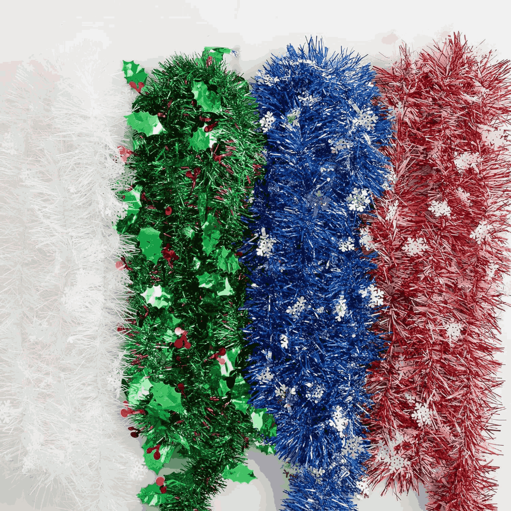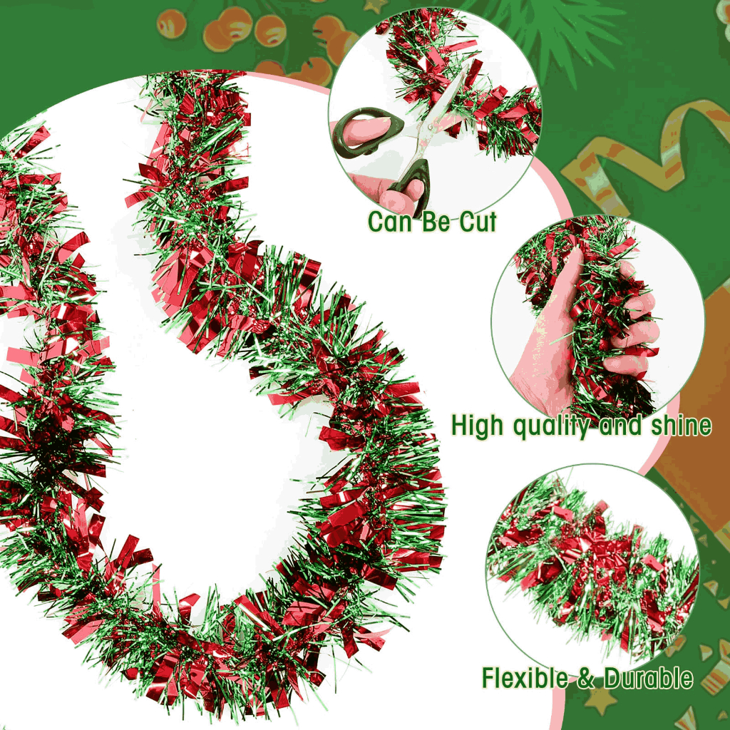 SHUAIAN Slinger Natal Premium Tebal Hijau Garland Tinsel Hijau Salju / Hiasan Pohon Natal / Selinger Natal Rumbai Warna Warni Untuk Dekorasi Pohon Natal