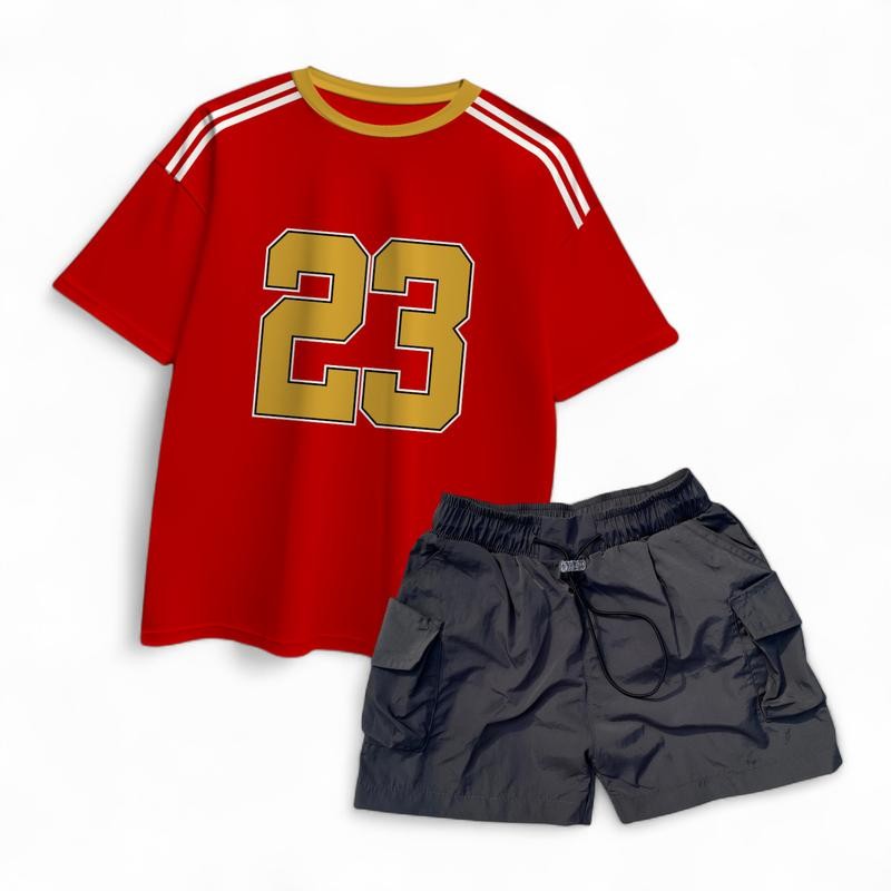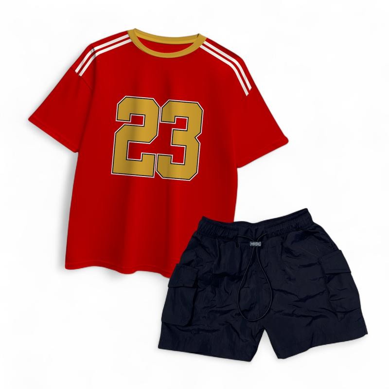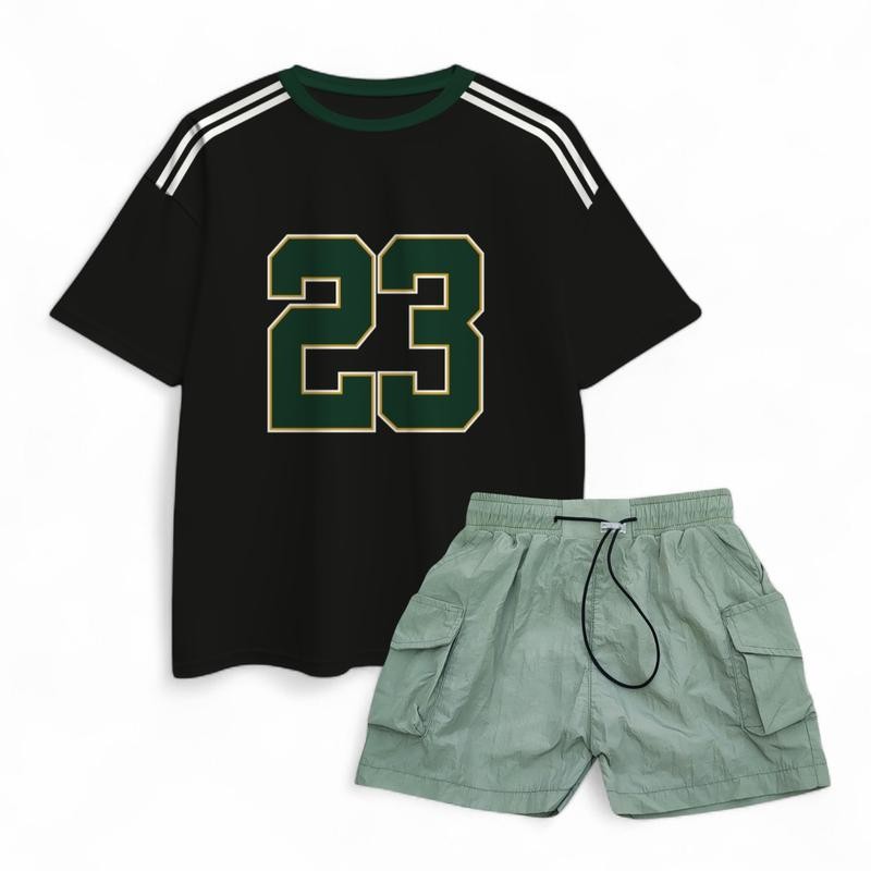 Setelan Kaos Bassball Anak Laki-Laki Distro Cotton 30s dan Celana Cargo Bahan Dusky Crinkle - Fashion Anak Laki-Laki