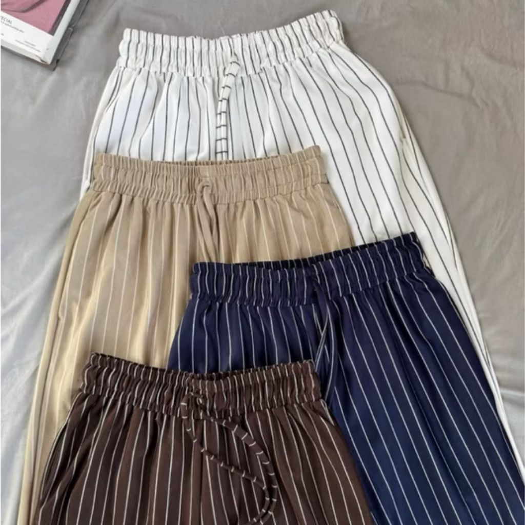 Everyday Pants | Celana Kulot Wanita Panjang Motif Garis | Highwaist Baggy Pants Kantor Kuliah Knit Bangkok