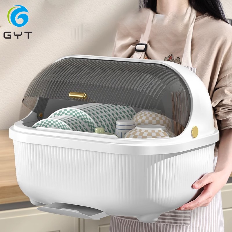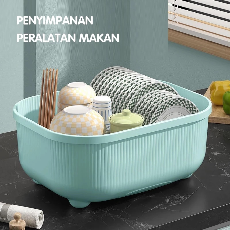 (Ukuran Besar)GYT Rak Piring Dengan Tirisan Air Tempat Penyimpanan Alat Makan Mangkuk Sendok Sumpit Garpu
