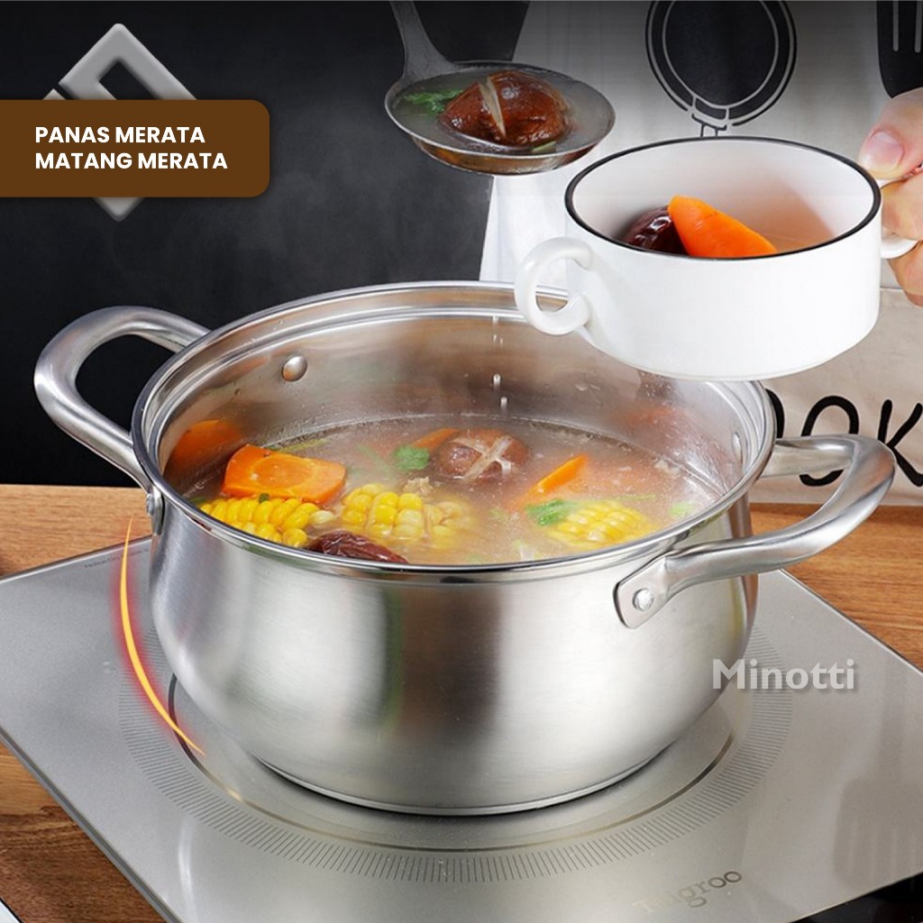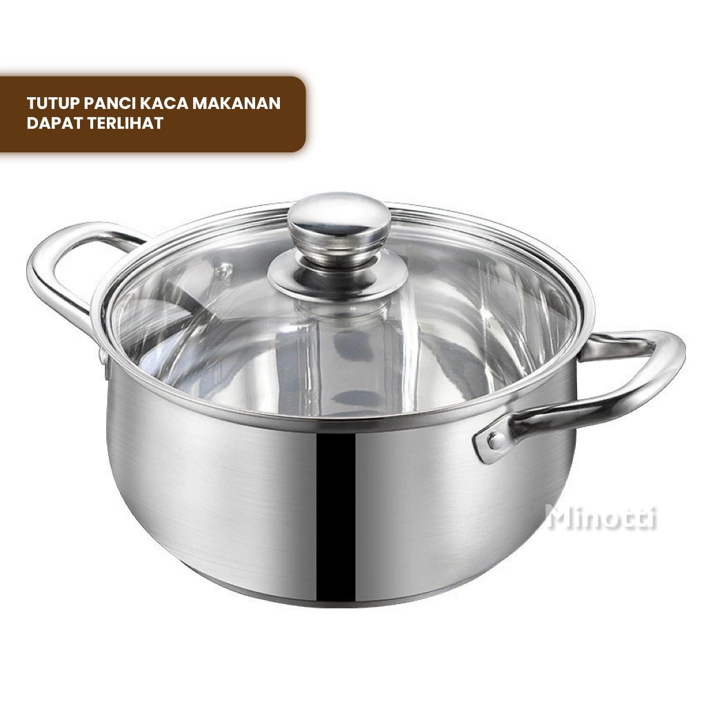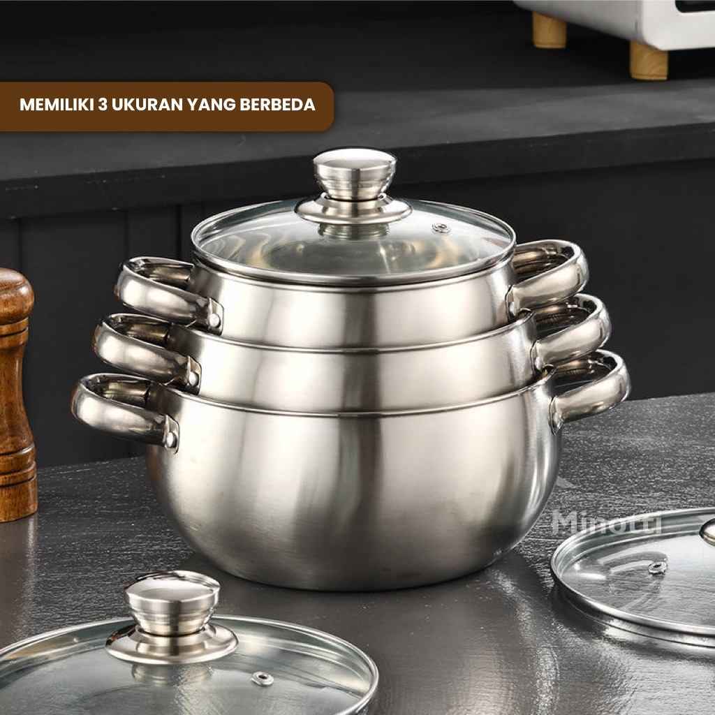 BMW Original Stainless Panci Soup Labu isi 3 Pcs Tutup Kaca Pumpkin Panci Rebus Set 3 Pcs Ukuran