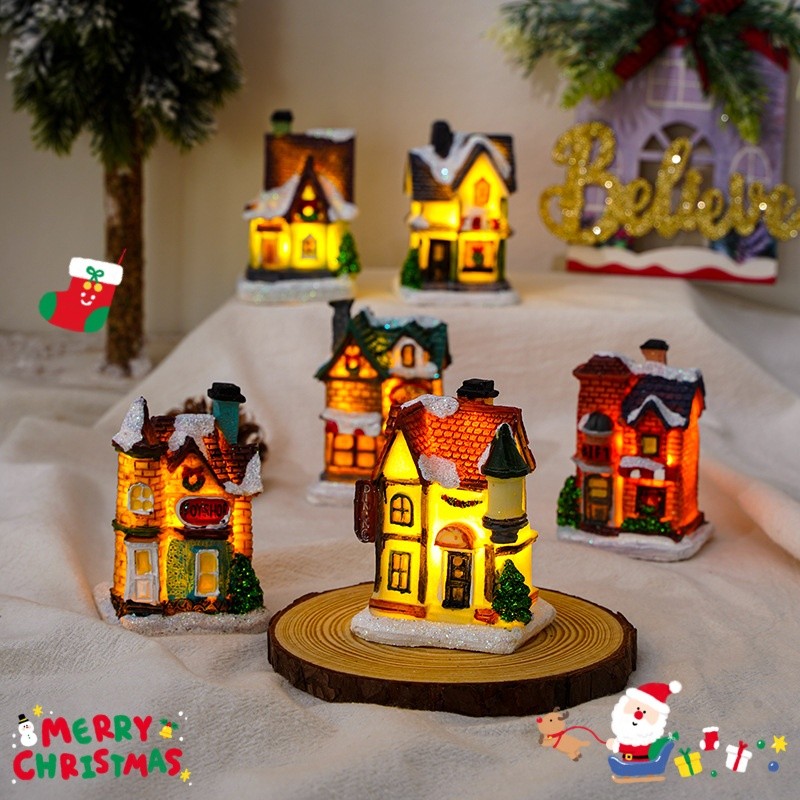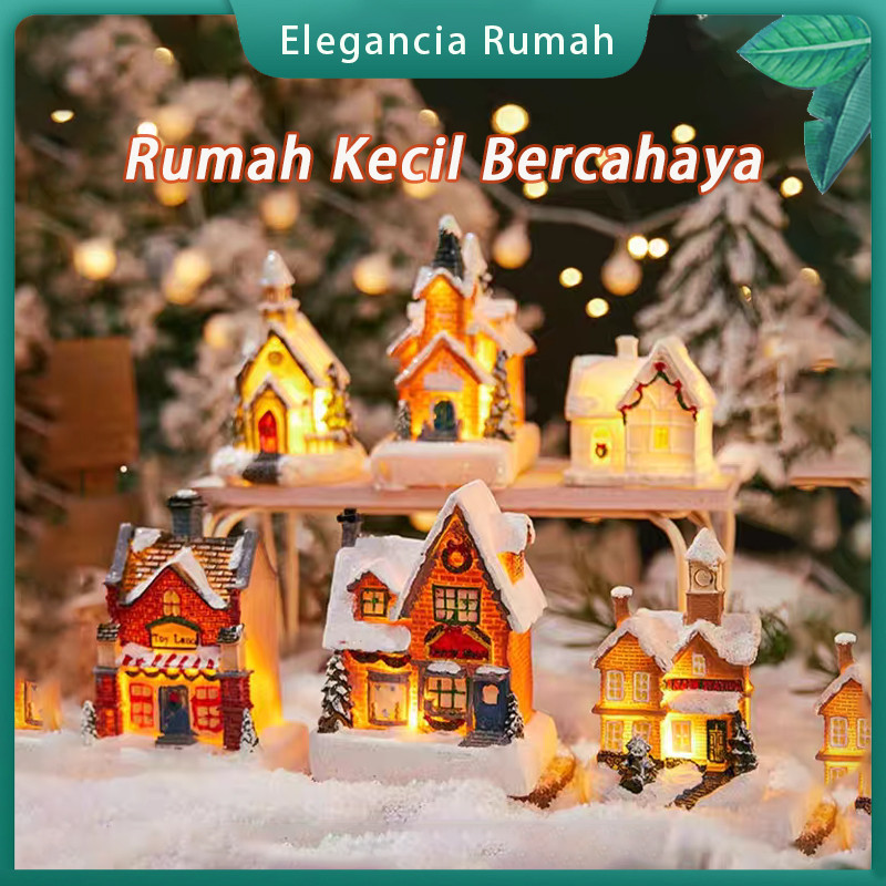 Hiasan Dekorasi Natal LED Rumah House /Ornamen Rumah Natal LED Miniatur Christmas Christmas Meja Dengan Suasana Natal Aksesoris Christmas Xmas Resin Dekorasi Natal