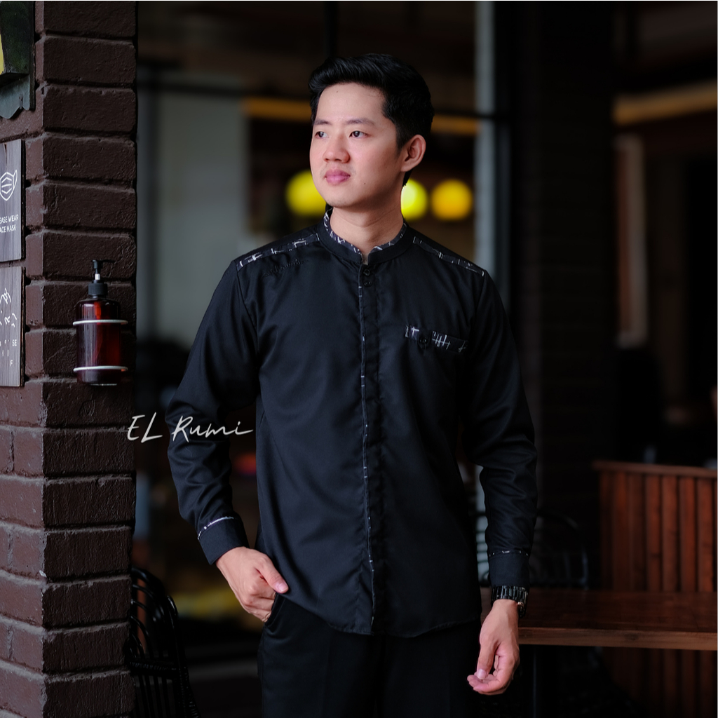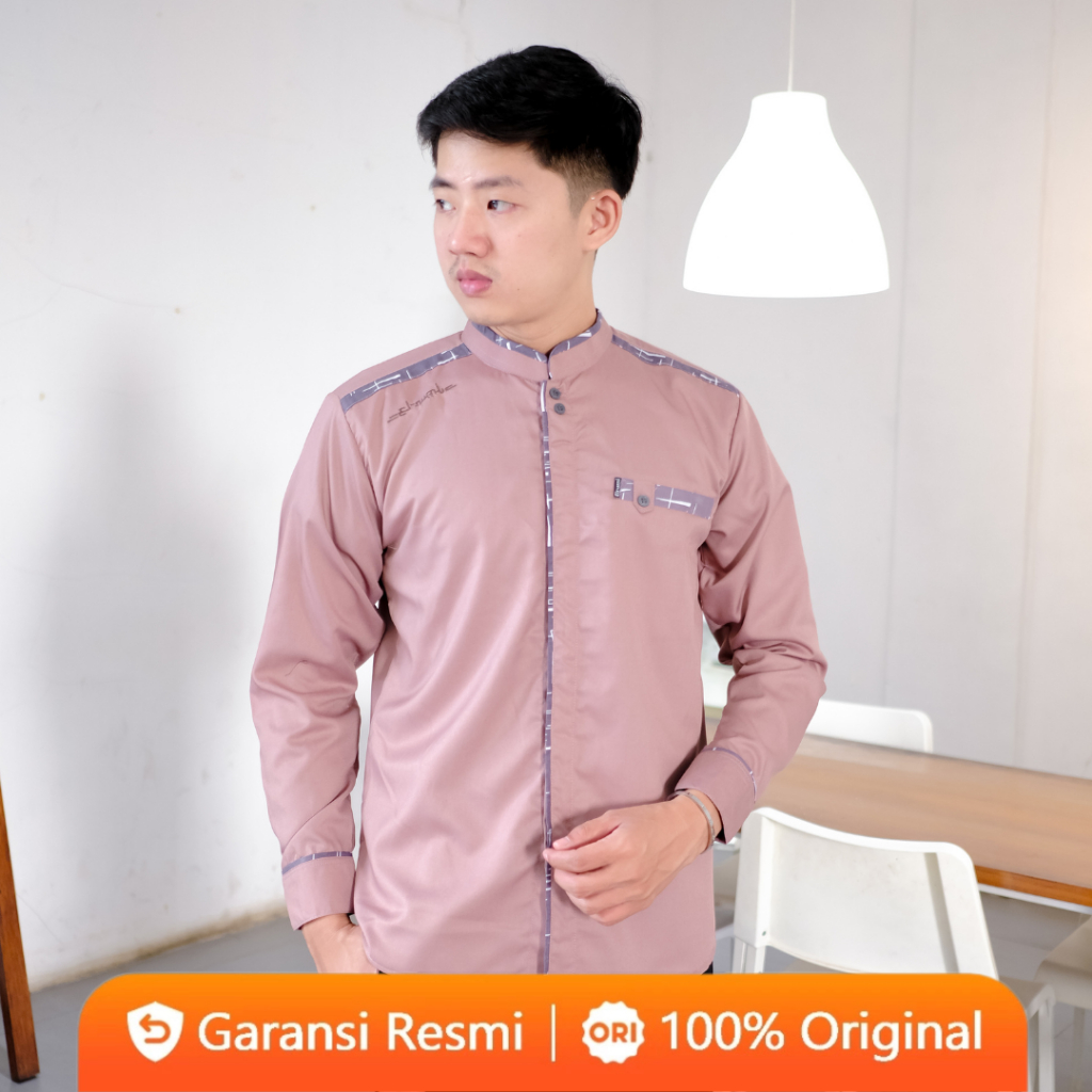 Baju Koko Pria El Rumi Lengan Panjang Berkombinasi Batik Motif New Yisunsin Lilac Terbaru