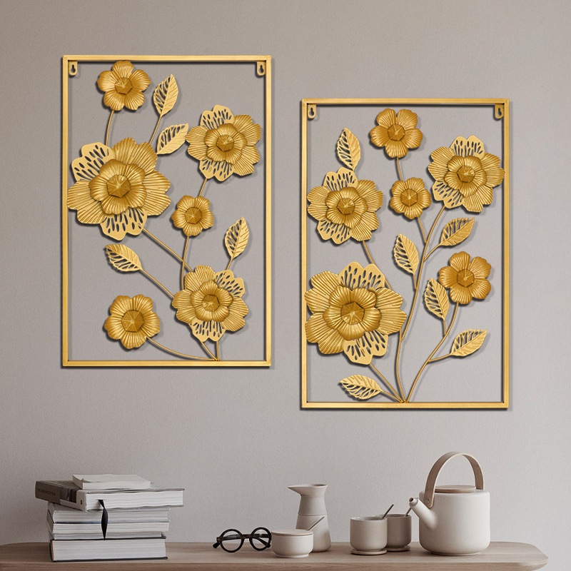 CELOGLO Hiasan Dinding Aesthetic Hiasan Dinding Bunga Kreatif Modern Latar Belakang Dinding Frame Metal Gold Daun