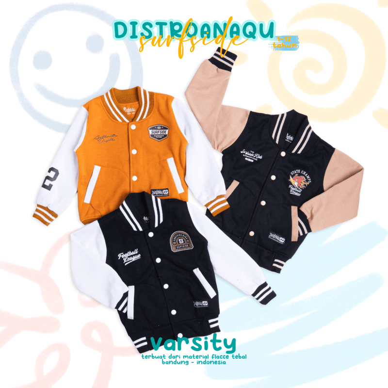 JAKET Varsity Baseball Anak SURFSIDE Anak Laki laki Perempuan Umur 1-12 Tahun ORIGINAL Distroanaqu