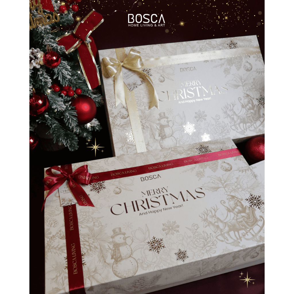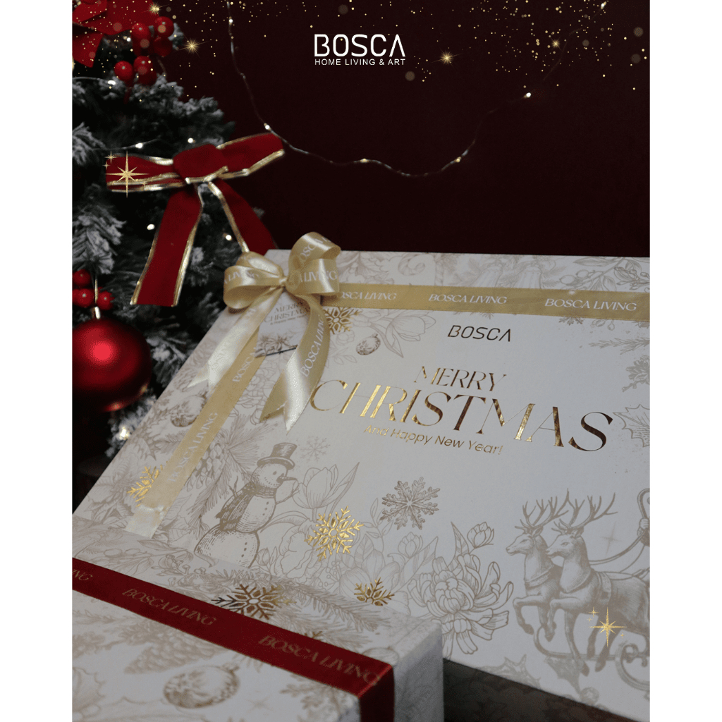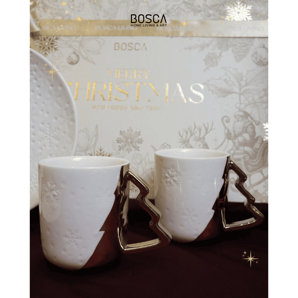 Bosca Living - Snow Frost Hampers / Set Piring dan Gelas Mewah Premium / Set Piring Rusa Gold Kramik / Set Cangkir Christmas Tree / Christmas Hampers