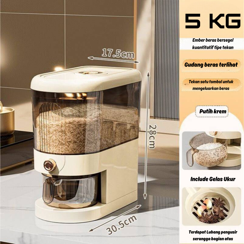 Alby Mart Dispenser Beras Mewah Estetik Kotak Tempat Wadah Penyimpanan Beras Rice 5Kg 10Kg