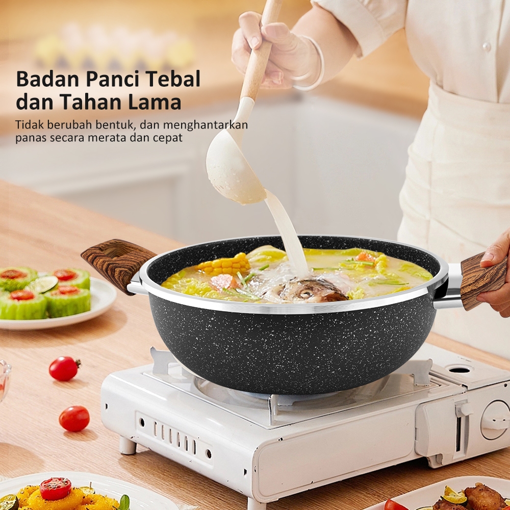 Special freemir Wajan Anti lengket Panci Granite Hitam Series 24cm Serbaguna Tinggi 10cm Berkukusan panci mie rebus
