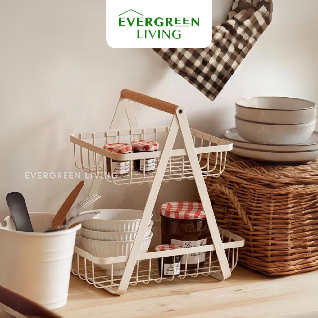 EVERGREEN Keranjang Rak Dapur Rak Buah Besi Segitiga / Tingkat 2 Keranjang Serbaguna Elegant Mewah Aestetik / Rak Keranjang Bawang Buah Dan Sayur Peralatan Dapur