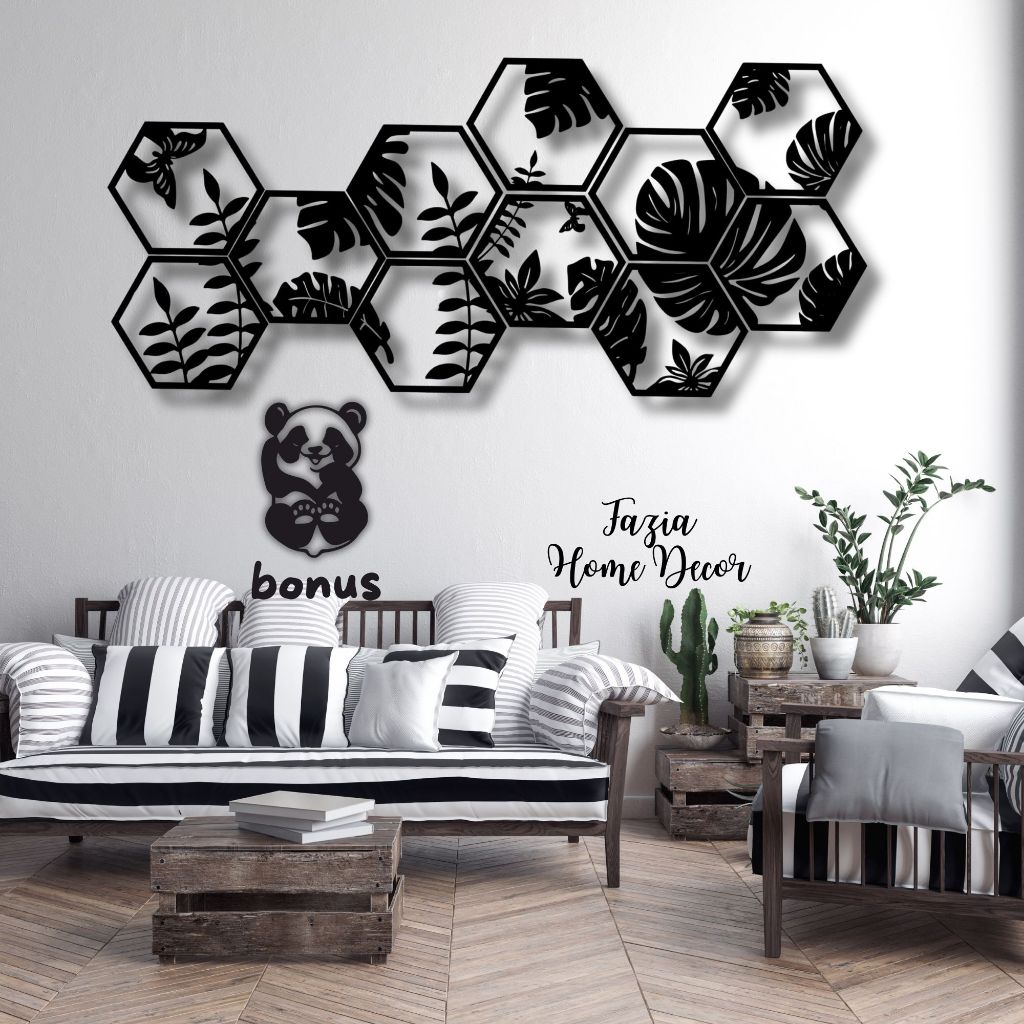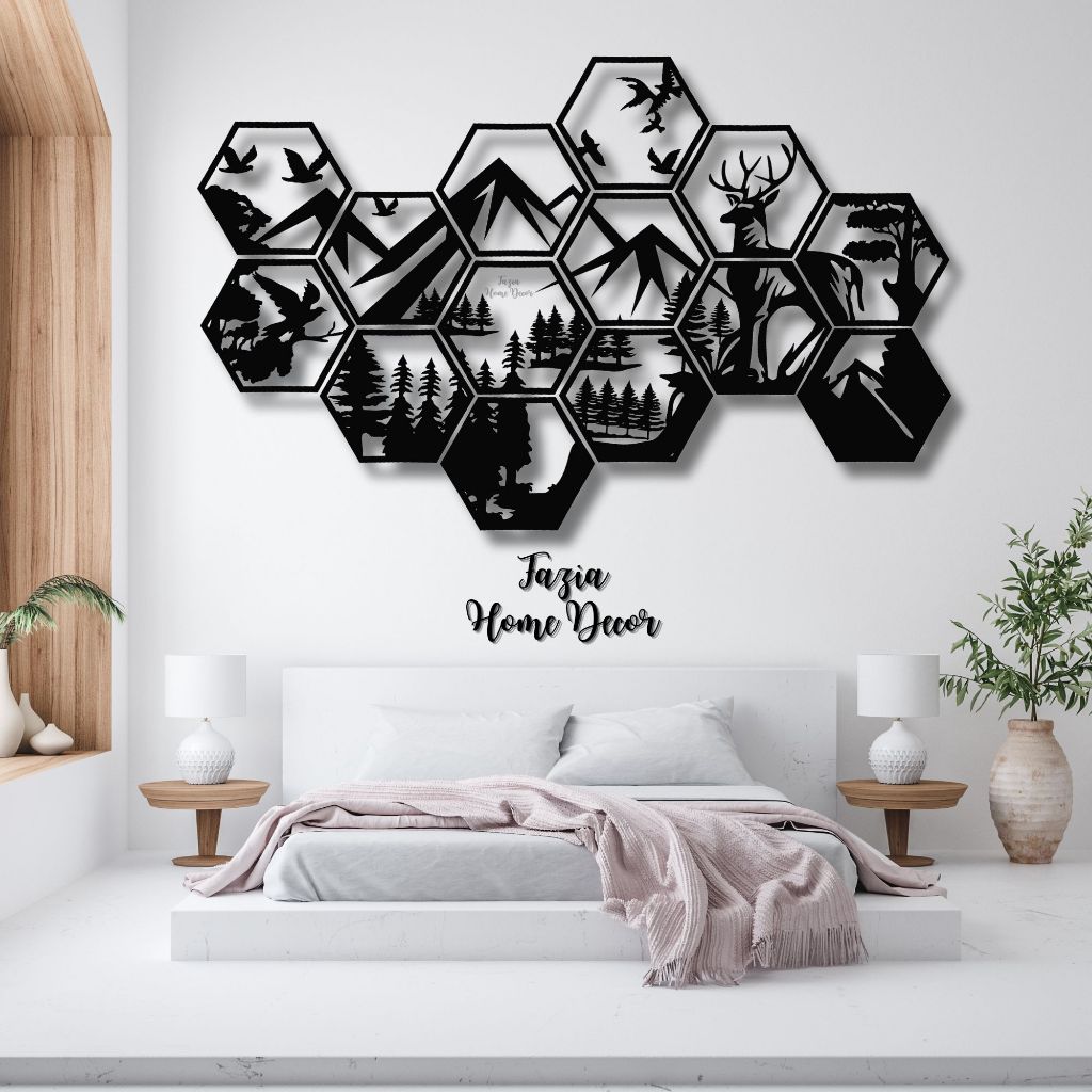 KREASI KAYU 3D UKURAN BESAR HEXSAGONAL ANIMAL 1 SET ISI 15 PANEL/ WALL DECOR