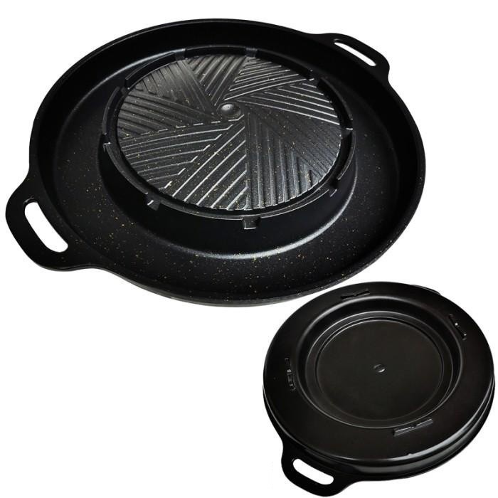 Bulgogi Pan Panci Steamboat BBQ Grill Kompor 2in1 Panggangan BBQ Korea Hotpot BBQ Kompor 2in1 Grill Pan Sukiyaki Pan