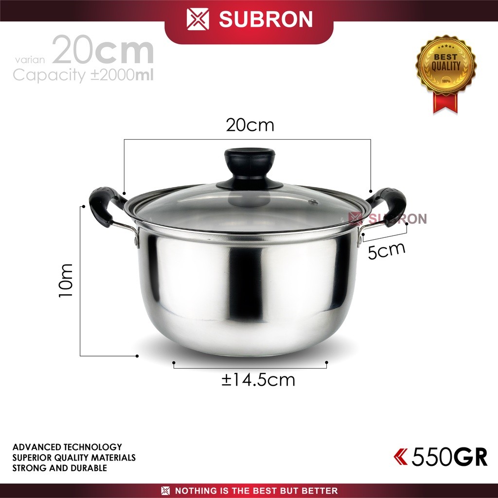 SUBRON Soup pot panci sup sop 20cm stainless steel tutup kaca BOX
