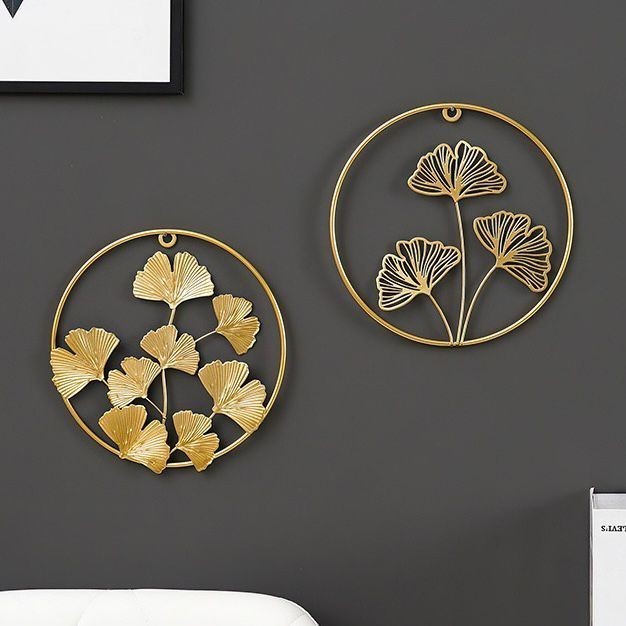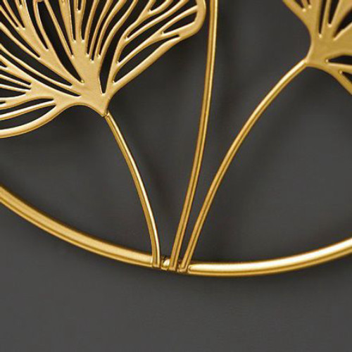 Hiasan Dinding Bulat Motif Daun Nordic /Hiasan Dinding Frame Metal Gold