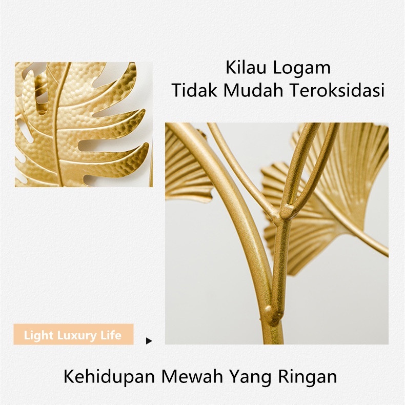 Wall Decor Hiasan Dinding Aesthetic Bahan Metal/Nordic Dinding Frame WallDecor Metal Gold Daun Leaf