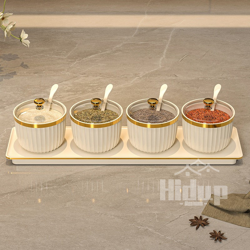 4pcs/set Tempat Bumbu set estetic 4 in 1 Bumbu Dapur Rumah Kotak Bumbu Tempat Bumbu Kompartemen Penyimpanan