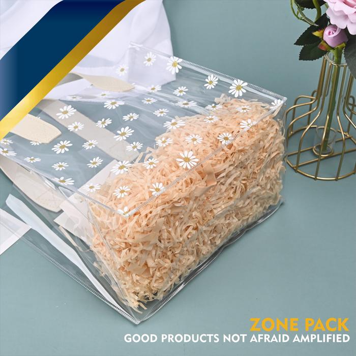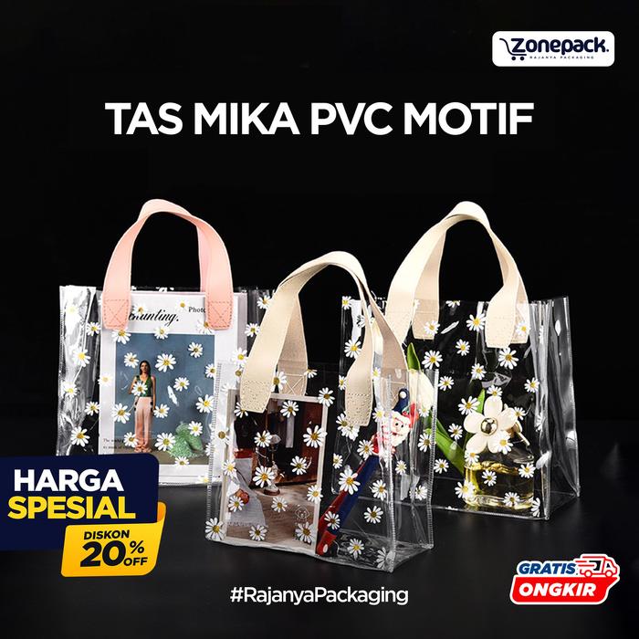 Tas Pvc Motif Bunga Daisy | Totebag Mika Souvenir Transparan | Goodiebag Gift Bag Handle Leather | Tas Hampers Wedding B