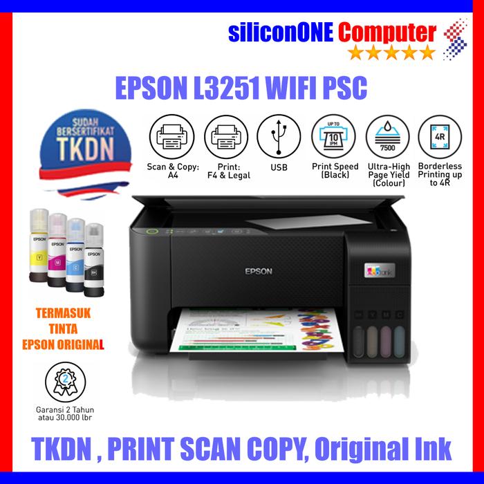 Epson Printer L3251 WIFI All in One ink Tank Print Scan Copy A4 Tinta Original RESMI