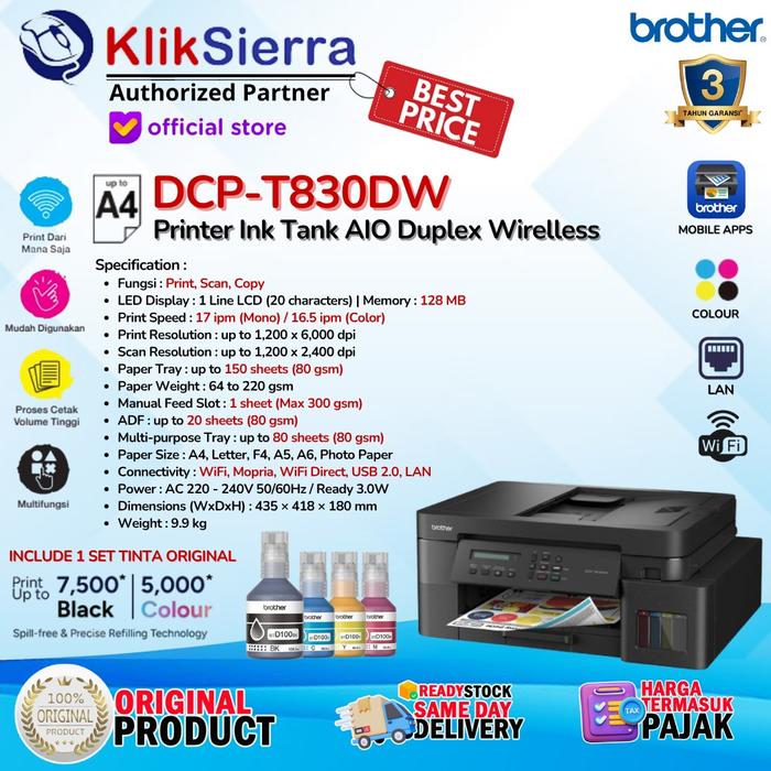 Printer BROTHER DCP-T830DW Printer Ink Tank All-In-One A4 Colour Multifunction T830 Duplex Wireless