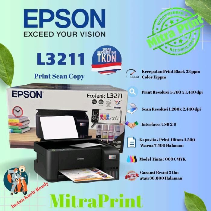 Printer Epson L3211 Print Scan Copy Garansi Resmi 3 Tahun
