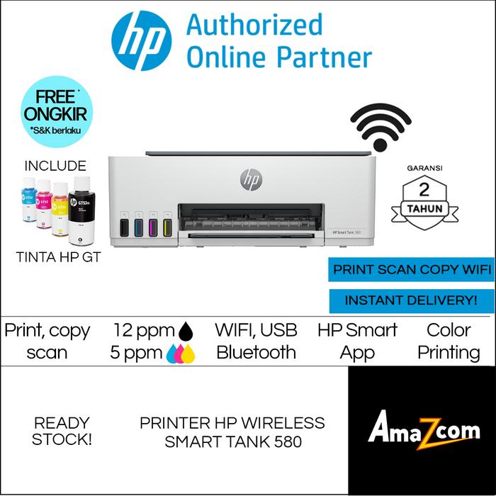 Printer HP 580 Smart Tank All In One Printer Wireless Wifi Bluetooth Garansi Resmi HP GT53 GT52