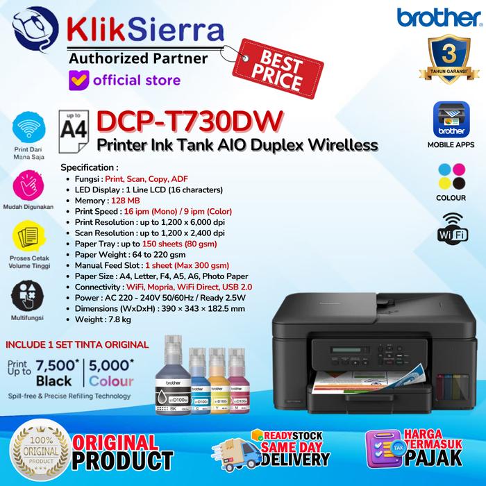 Printer InkTank BROTHER DCP-T730DW T730 Duplex WiFi - Wireless Printer Inkjet Multifunction A4 -