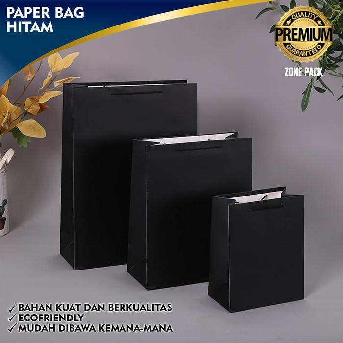 Paper Bag Hitam | Paper Bag Hitam Polos Souvenir | Paper Bag Gift Bag Ulang Tahun Kantong Tali - P.14 X T.18 X L.8 Cm