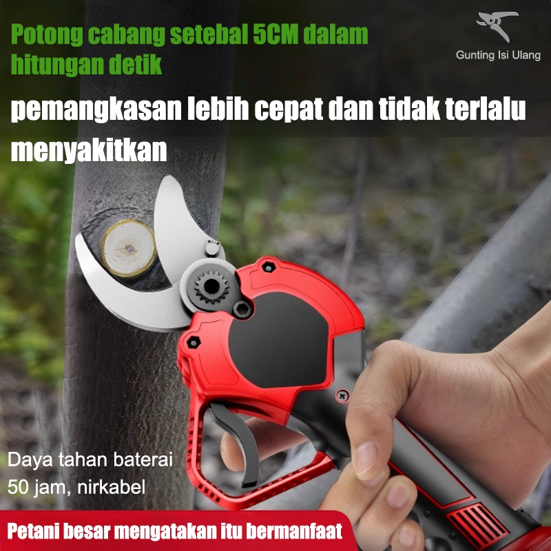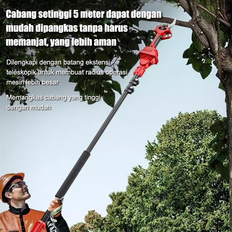 Gunting Taman Listrik Set Termasuk Tiang Ekstensi/Kotak Perkakas 2,1m Gunting Dahan Cordless Gunting Dahan Listrik 2 Bat