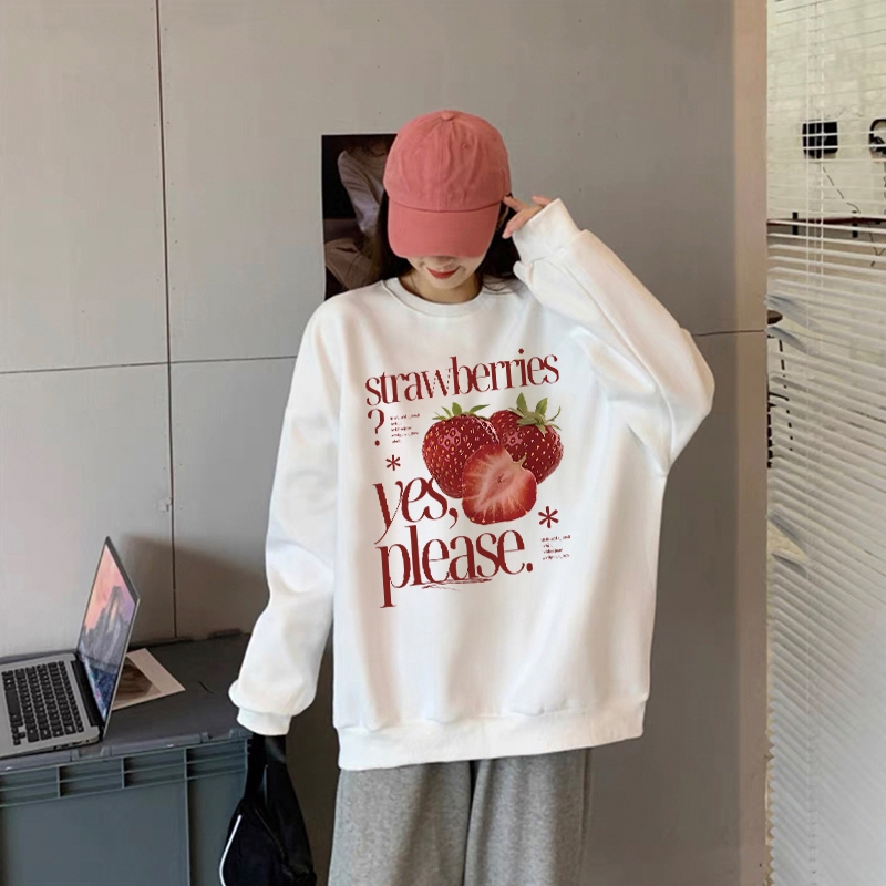 Forteid Sweater Lengan Panjang Oversized Street Style Korean Style/Switer Wanita Oversize Kaos Cetakan Strawberry Letter