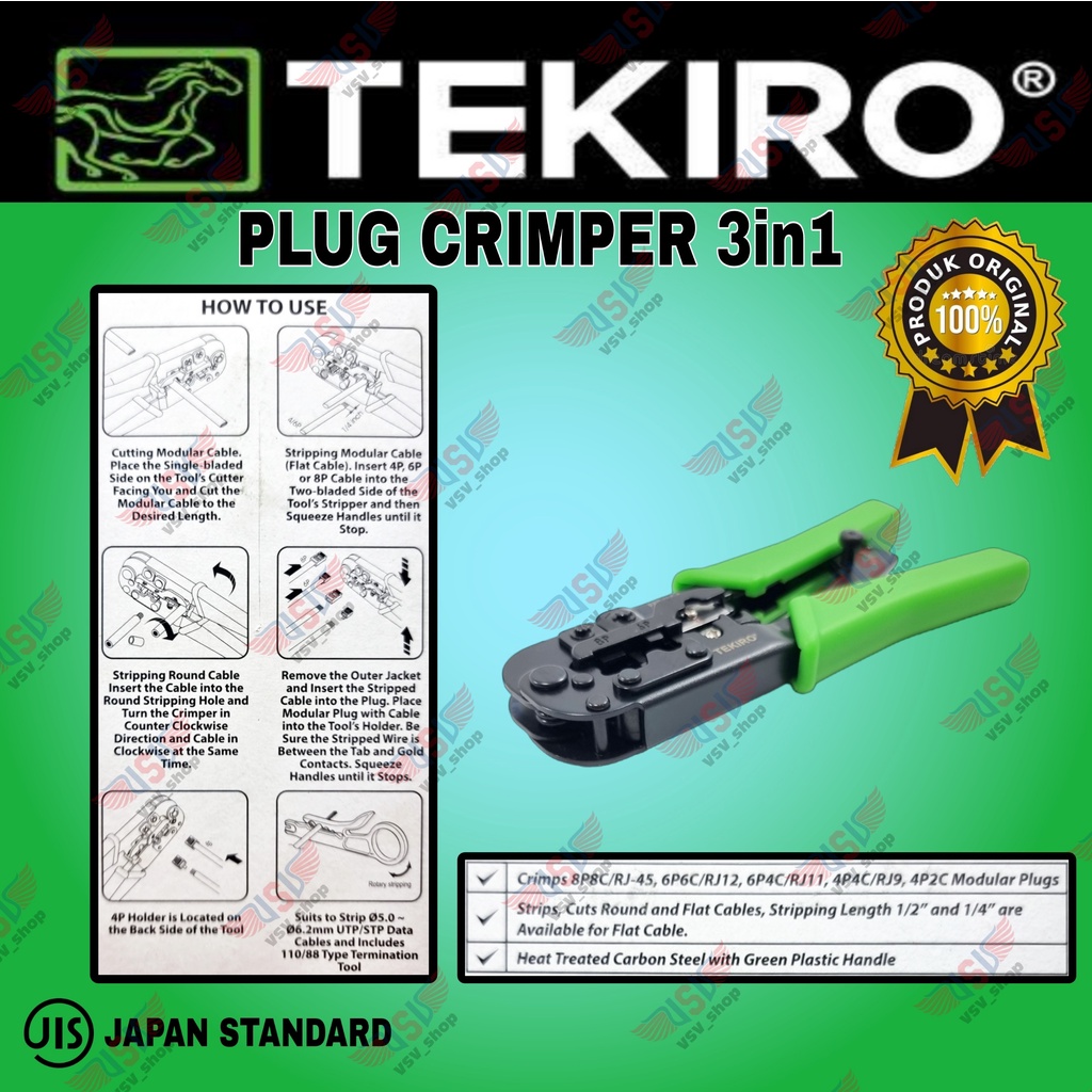 TEKIRO Tang Crimping RJ45 RJ11 Plug Crimper 3in1 Crimping 8P 6P