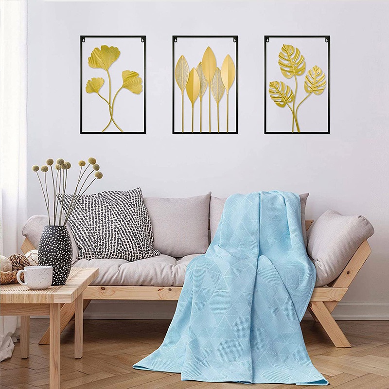 Roxart Hiasan Dinding Wall Decor 4060cm Bunga Daun Estetik Inding Besi Sofa Frame Metal Gold Daun