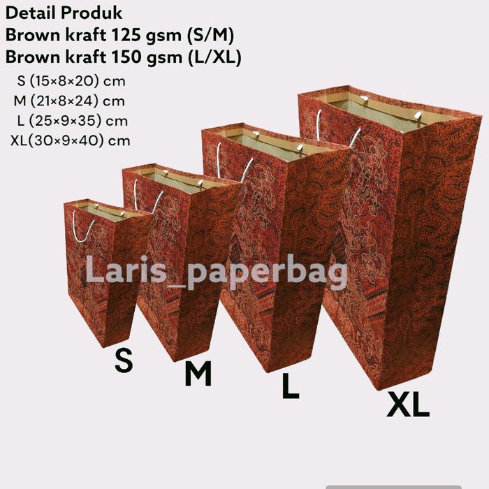 Paper Bag Batik Merah Lusinan Isi 12 Pcs Ukuran S-M-L-Xl - S 15×8×20 Cm