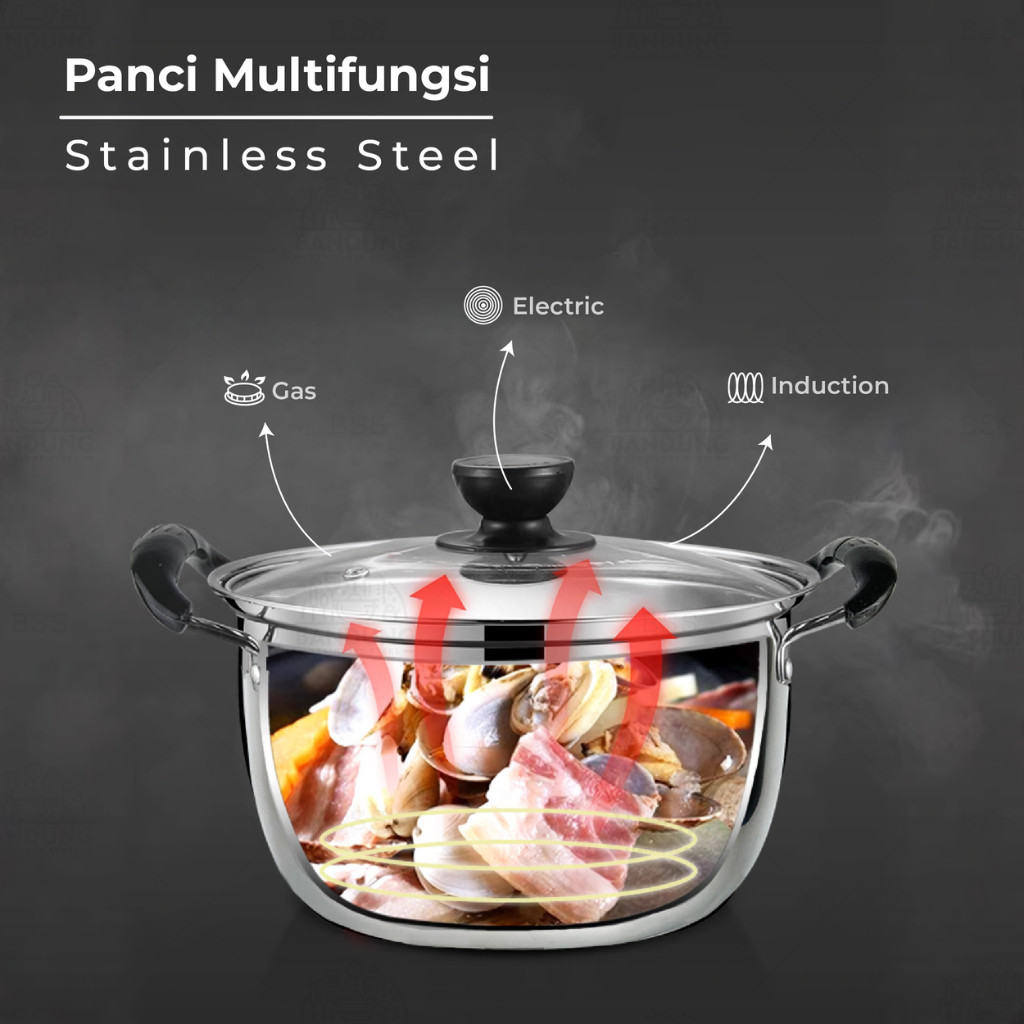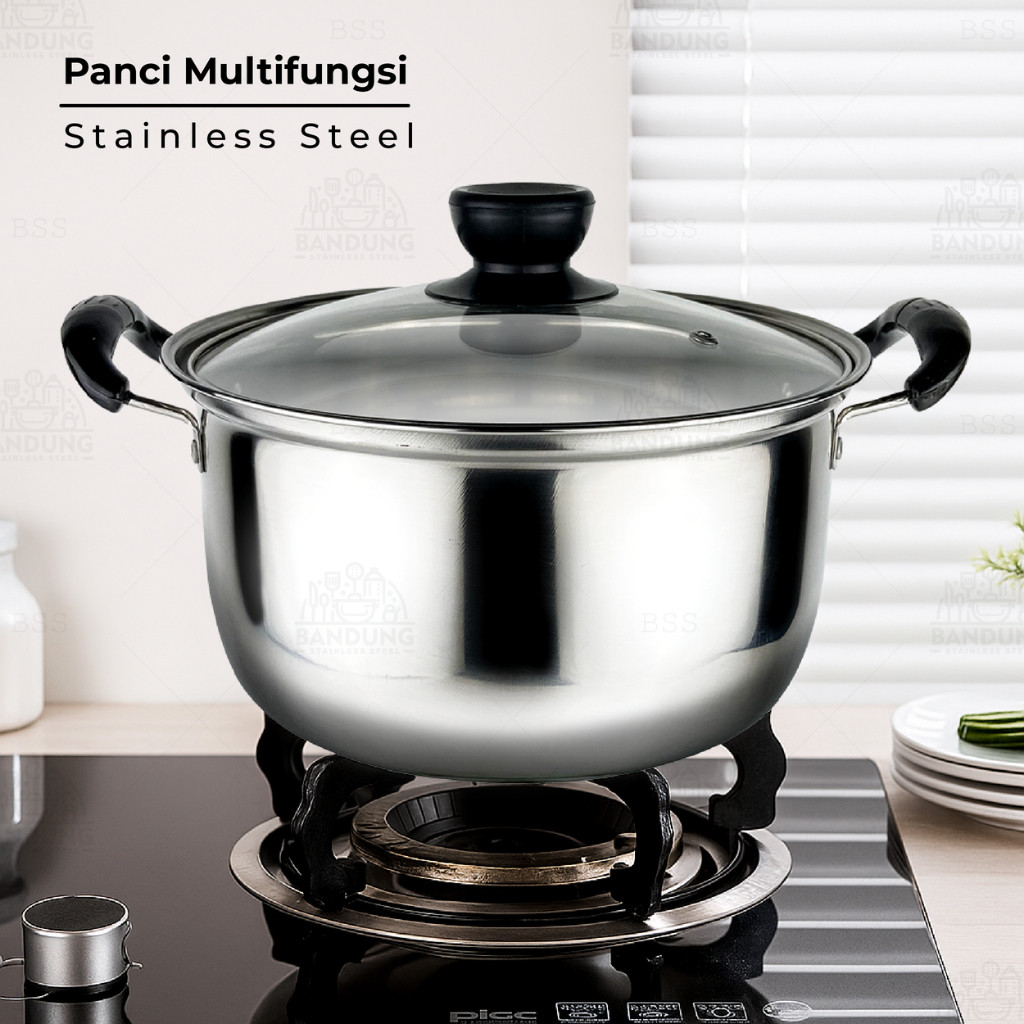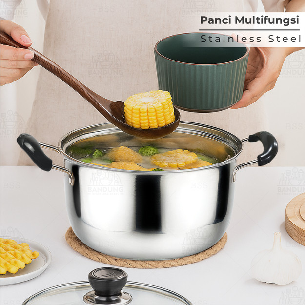 Soup Pot Panci Sup Sop 22cm 24cm Stainless Steel Tutup Kaca BOX