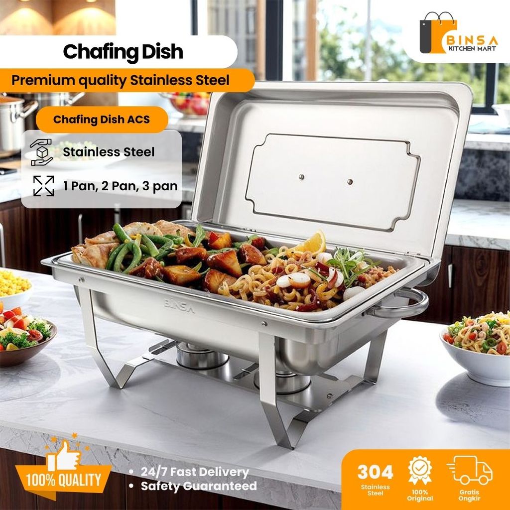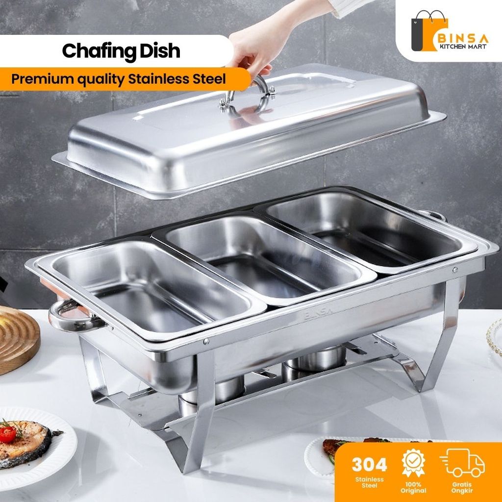 BINSA - Tempat Prasmanan Stainless Steel Catering Buffet Set Sekat 1 2 3 Porsi Besar ACS