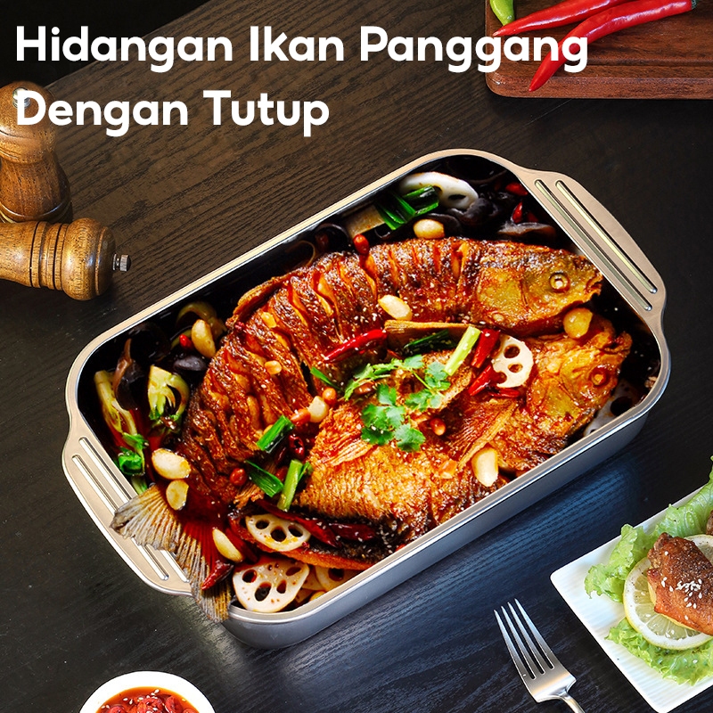 mall inline badgeLejumall Serbaguna Nampan panggang ikan stainless steel yang diperkuat 36cm/41cm Nampan prasmanan stain