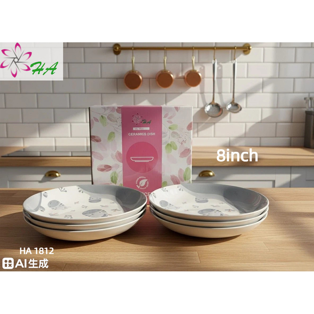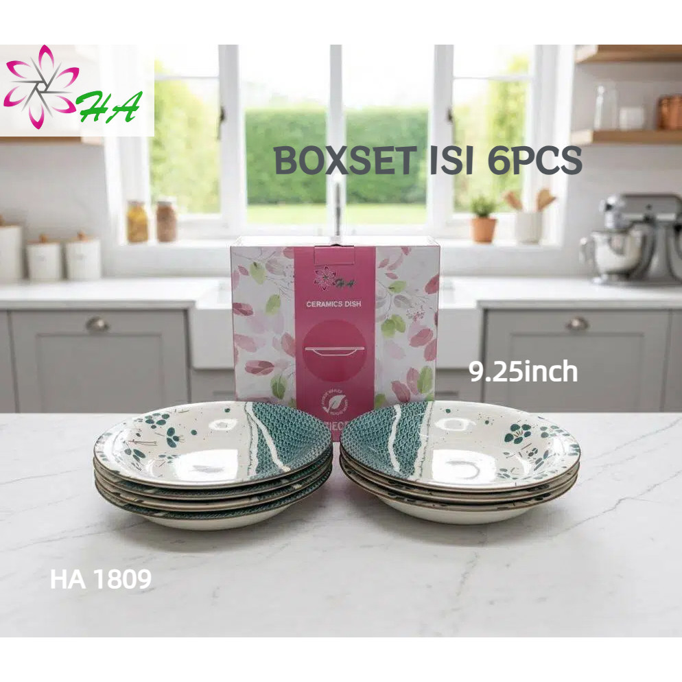 HA Piring Makan Motif Elegan Diameter 9.25inch 6pcs / Piring Makan / Alat Makan Motif Elegan (SNI)