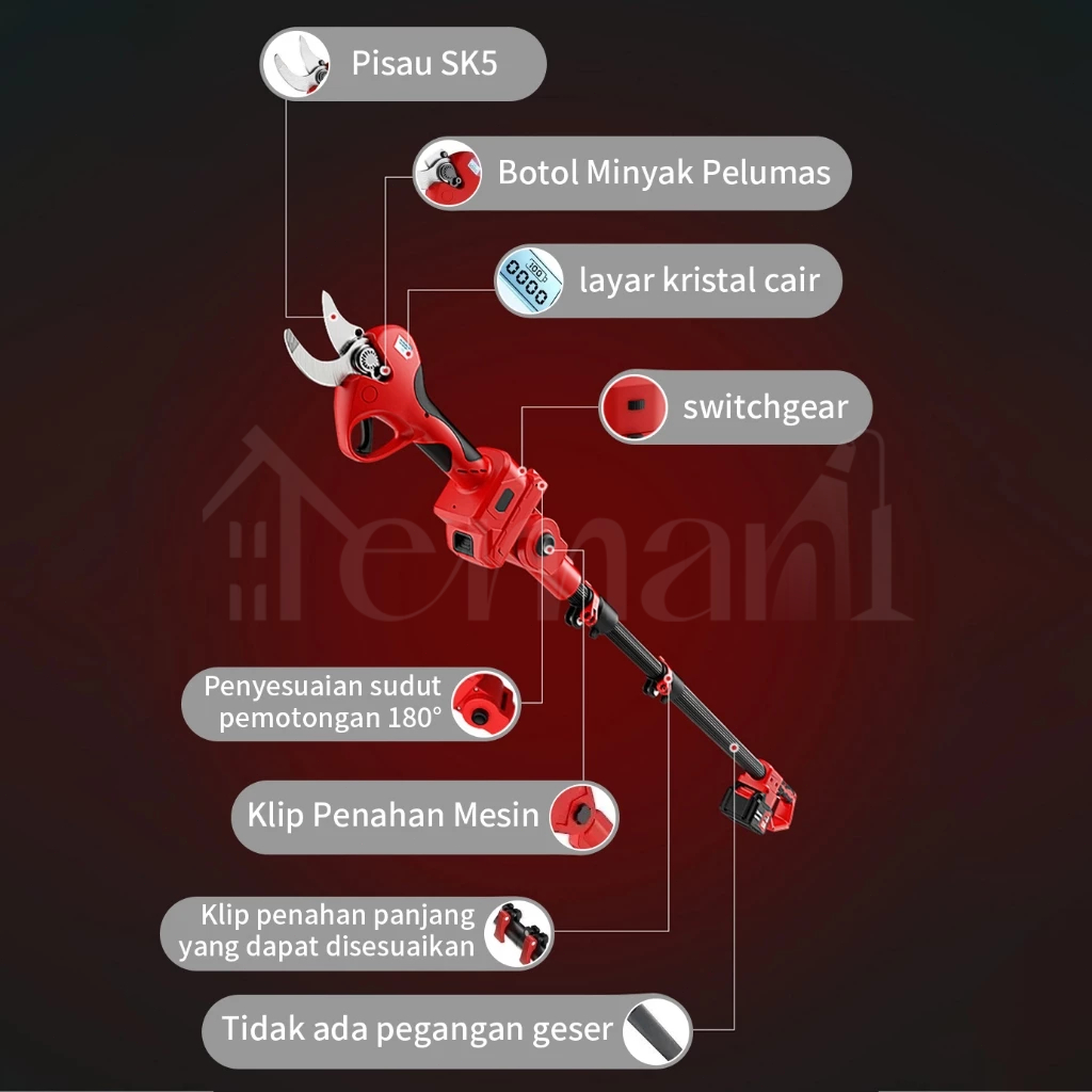 Gunting Taman Listrik,Gunting Dahan Set Prunner Chainsaw Electric Cordless Tiang ik 2,1m,Motor Tanpa Sikat Gunting Dahan