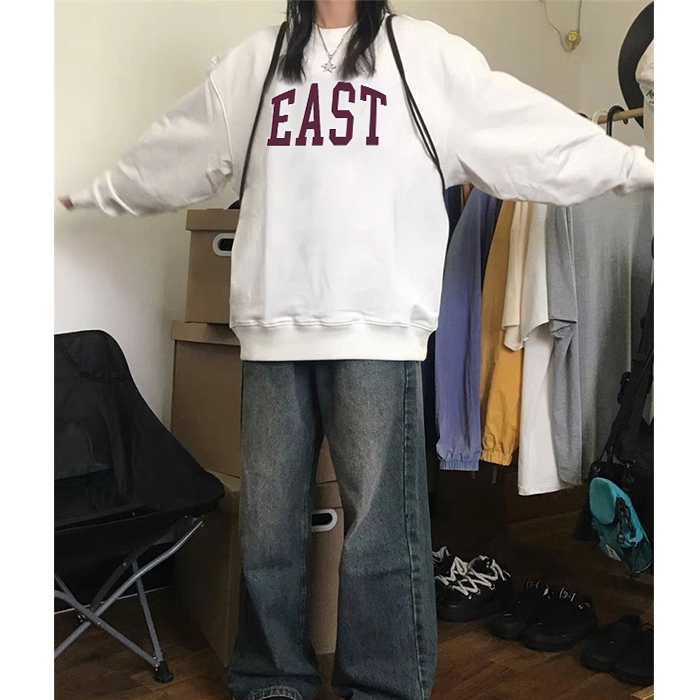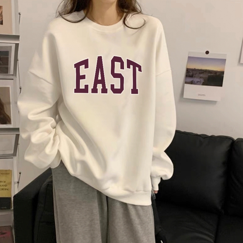 Forteid Sweater Lengan Panjang Oversized Street Style Korean Style/Switer Wanita Oversize Kaos Pencetakan East Printing