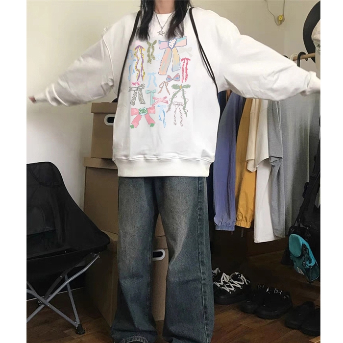 Forteid Sweater Lengan Panjang Oversized Street Style Korean Style/Switer Wanita Oversize/Cetakan Busur/Korean Style Swe